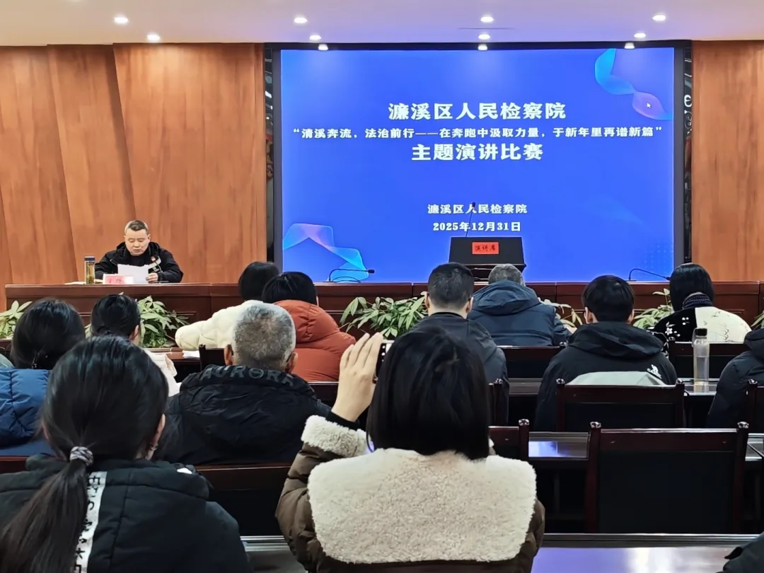 2025年12月31日上午,濂溪区人民检察院成功举办“清溪奔流,法治前行——在奔跑中汲取力量,于新年里再谱新篇”主题演讲比赛,院党组成员、政治部主任朱李林主持活动。此次活动旨在深入学习2025年度法治人物陈禹橦同志先进事迹,激励全体检察干警以崭新面貌迎接2026年,汇聚推动检察工作高质量发展的精神力量。